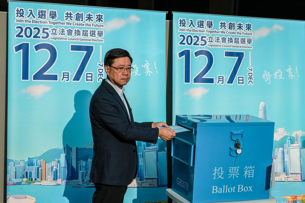 Главният изпълнителен директор на Хонконг Джон Лий Ка-чиу гласува в избирателна секция за осмите общи избори за Законодателен съвет в Хонконг на 7 декември 2025 г. [Photo by ANDY CHONG / CHINA DAILY]