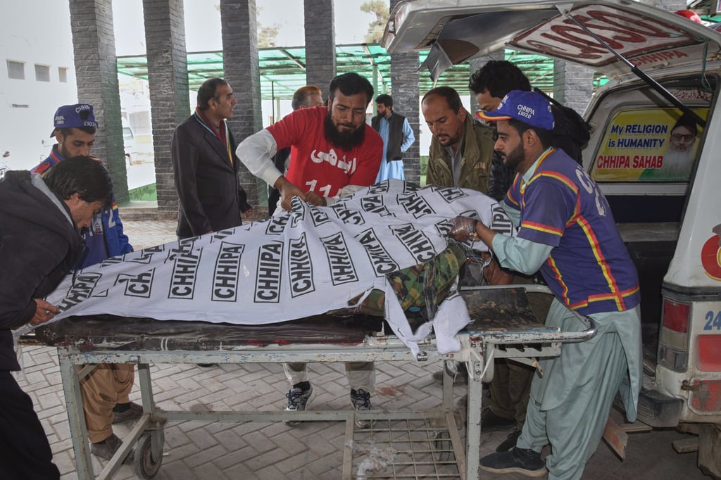 Доброволци и роднини товарят тялото на полицай, убит от екстремисти, в линейка в болница в Куета, Пакистан, в събота. Снимка: APДоброволци и роднини товарят тялото на полицай, убит от екстремисти, в линейка в болница в Куета, Пакистан, в събота. Снимка: AP