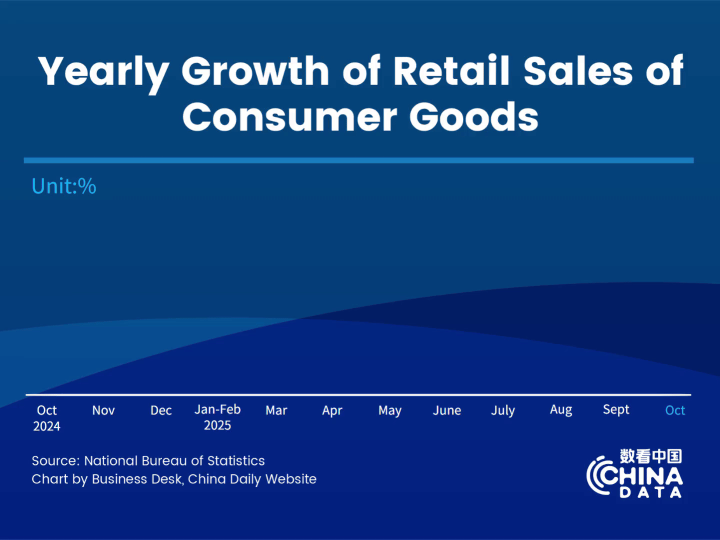 Продажбите на дребно в Китай са се увеличили с 2,9 процента на годишна база през октомври, съобщи Националното статистическо бюро в петък.