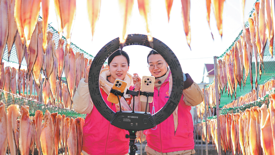 Стриймъри на живо насърчават продажбите на осолена риба в Rongcheng, провинция Shandong. LI XINJUN/ЗА КИТАЙ ДЕЙЛИ