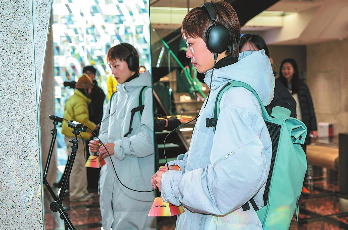 Клиент се наслаждава на музика във водещия магазин на Salomon в Чънду, провинция Съчуан, на 25 декември. CHINA DAILY