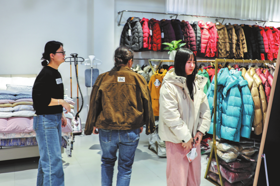 Клиенти пазаруват пухени якета в Guigang, автономна област Guangxi Zhuang, на 18 декември. CHINA DAILY